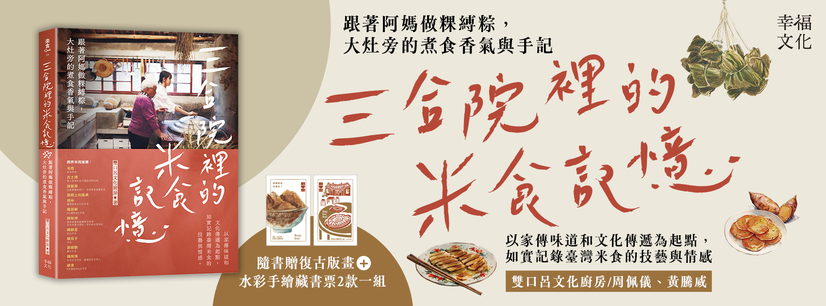 《三合院裡的米食記憶:跟著阿媽做粿縛粽,大灶旁的煮食香氣與手記(隨書贈復古版畫+水彩手繪藏書票2款一組)》