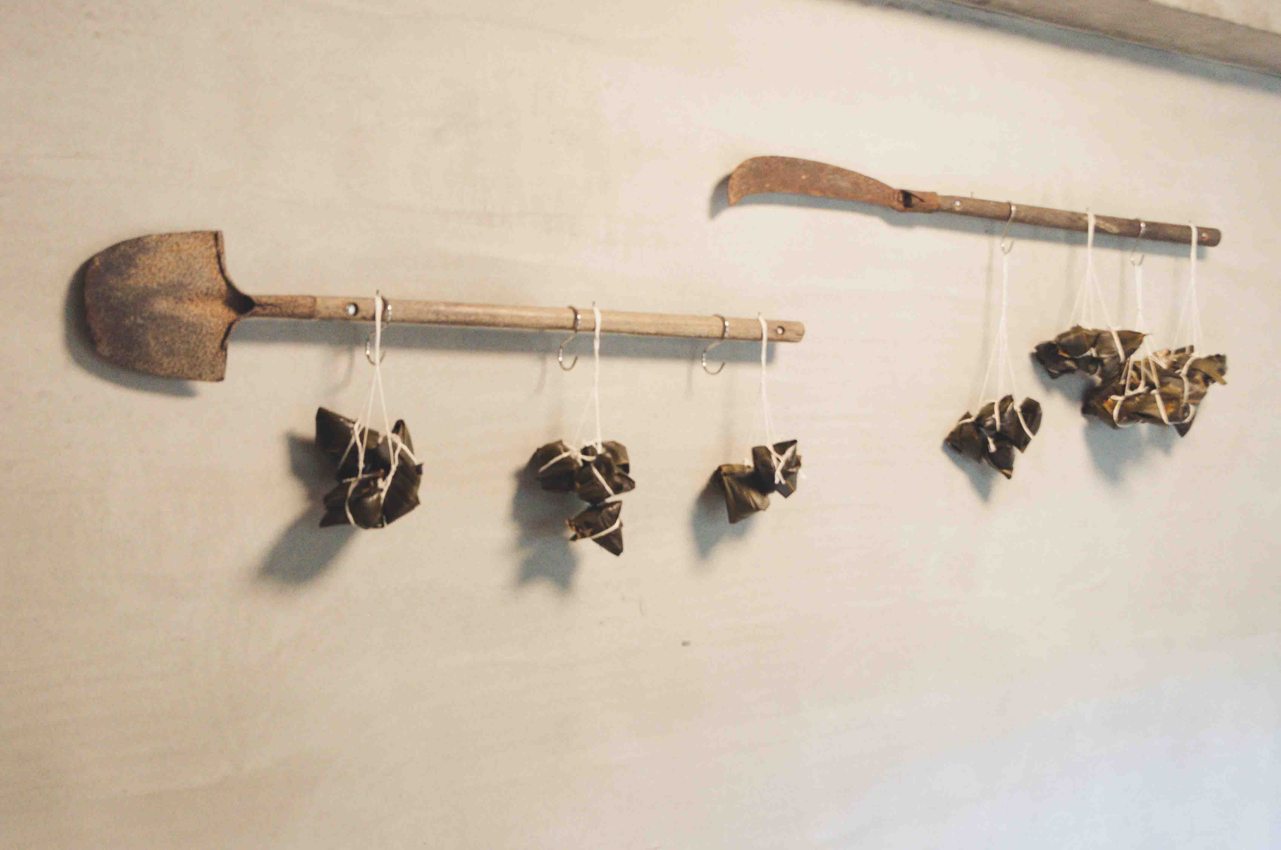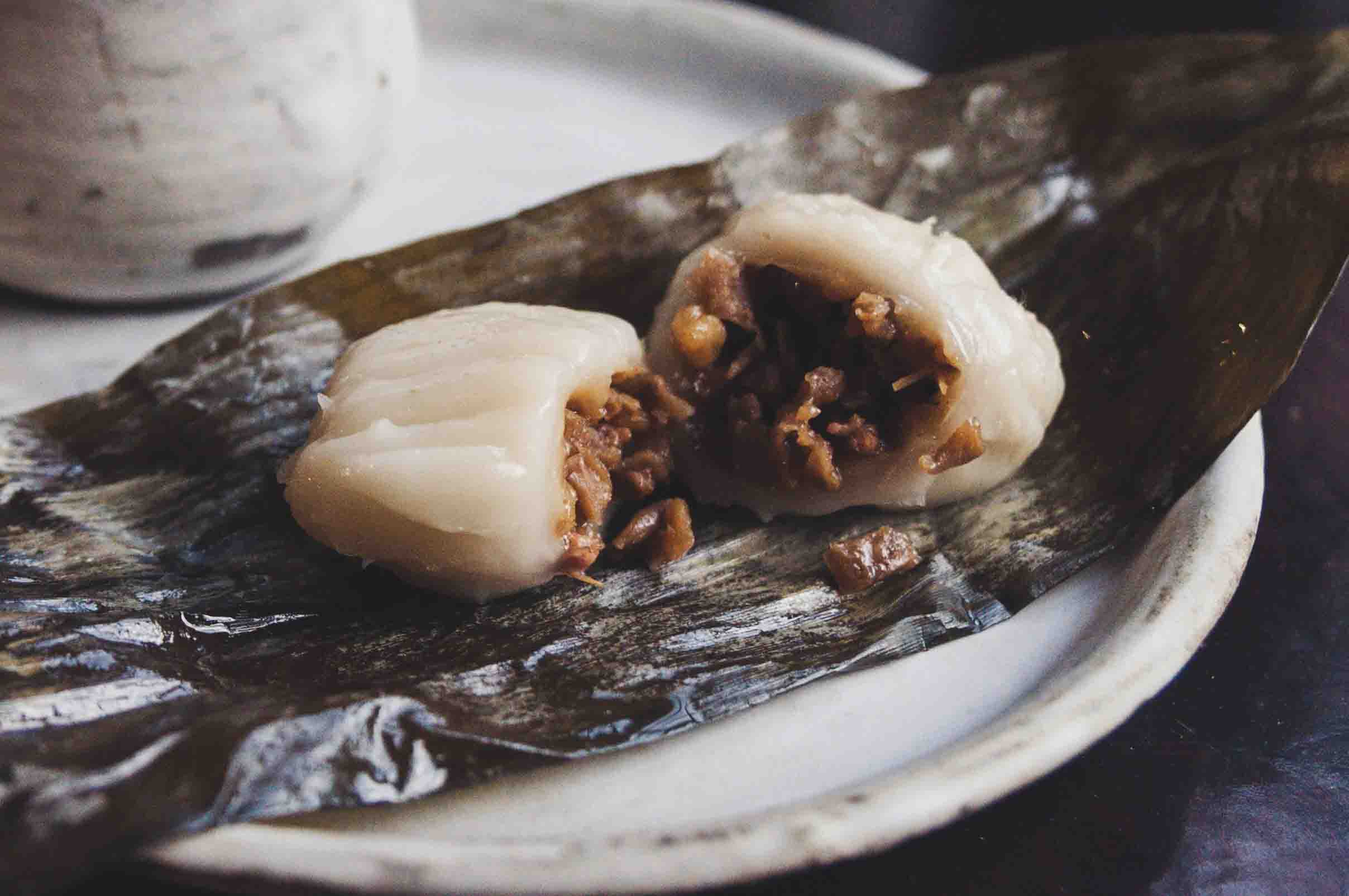 ② 手作粿粽 (6顆):課程從米的製程開始,將兩種不同品種的臺灣稻米混合磨成粿漿,瀝乾成為「粿粞」,再透過手感與溫度揉製粿皮,包進自己炒的鹹香菜圃餡,使用竹農採收的雲林古坑野生麻竹筍葉綁粽,最後用大灶蒸煮,一起共食並帶回家分享給家人、朋友。