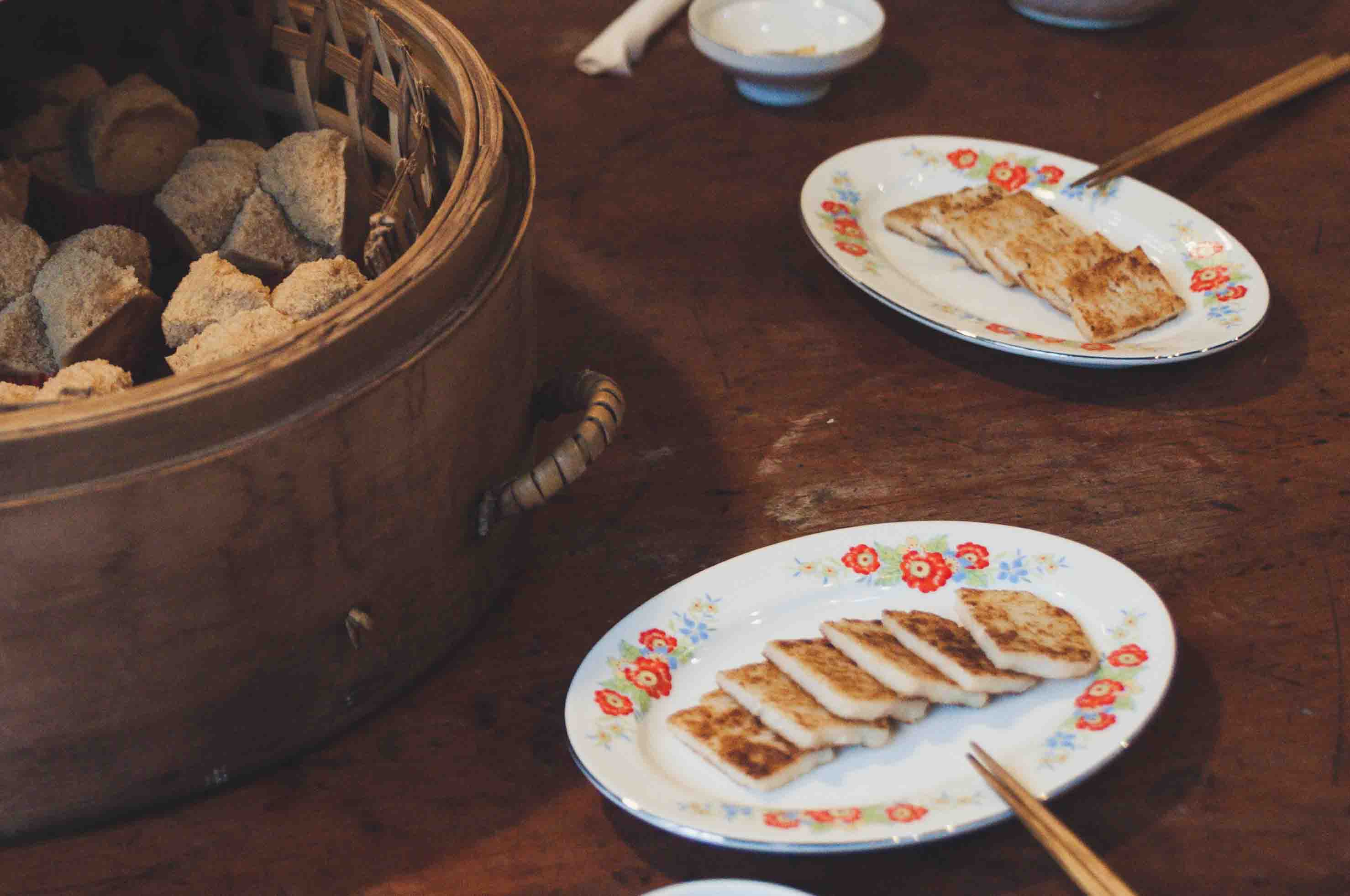 記憶中,年前阿嬤總嚴肅地在廚房忙進忙出,大灶上頭蒸籠蒸煮的年糕,開蓋時那木頭混著甜甜的香氣,最是令人難忘!使用酵母發酵的發粿,成群盛開,「開花」的程度代表著未來一年的運勢!還是蘿蔔盛產的季節,「食菜頭,好彩頭」依然應景!這三樣代表年味的米食製品,除了祭拜祖先和神明,也祭了我們的五臟廟!農曆年前,與我們一起在三合院裡作粿、炊粿,將完成的年糕與蘿蔔糕帶回家,與家人一同品嚐!