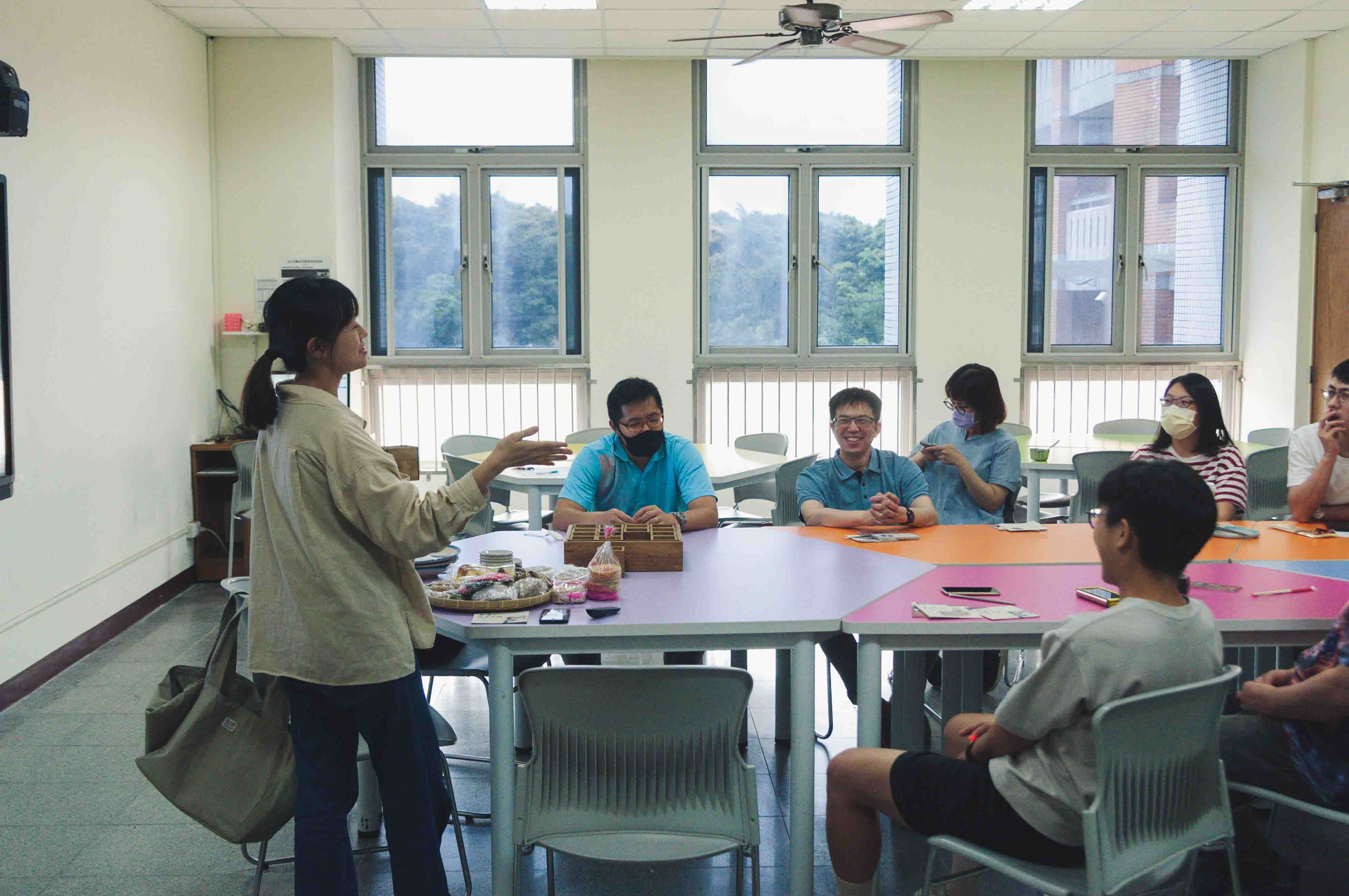 這次到大溪高中分享的對象不是同學們,而是老師們!我們買了碗粿、粽子、芋粿巧、草仔粿、赤米甜、月光餅、糕仔、鹼仔粿、鹹綠龜粿和紅龜粿,搭配我們扛去的米盒,讓參與的老師們能從每種粿的口感實際感受和了解不同種類米的特性。當然也分享了大溪的七夕拜七娘媽的 #車輪粿。