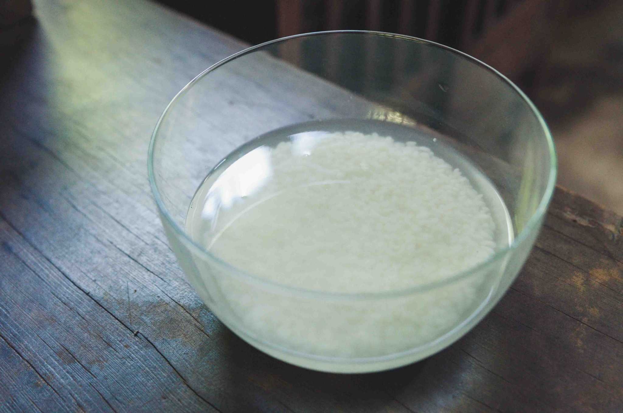 米洗淨,加超過米量約1公分的水量浸泡2-3個小時後瀝乾水分。